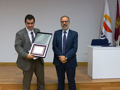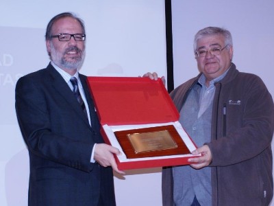 José Luque, director del Complejo Industrial de Repsol, en Puertollano, hace entrega del Premio de Seguridad 2014 a Martín Mora, Director General de MEISA.